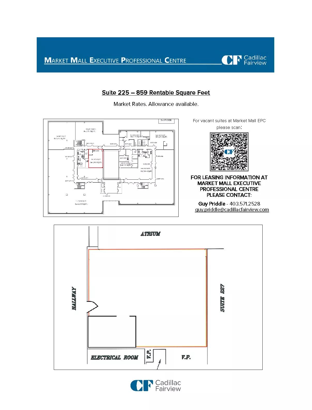 | Market Mall Executive Professional Centre | 225 | 859 | Immediately | Space for immediate fixturing | |||||
