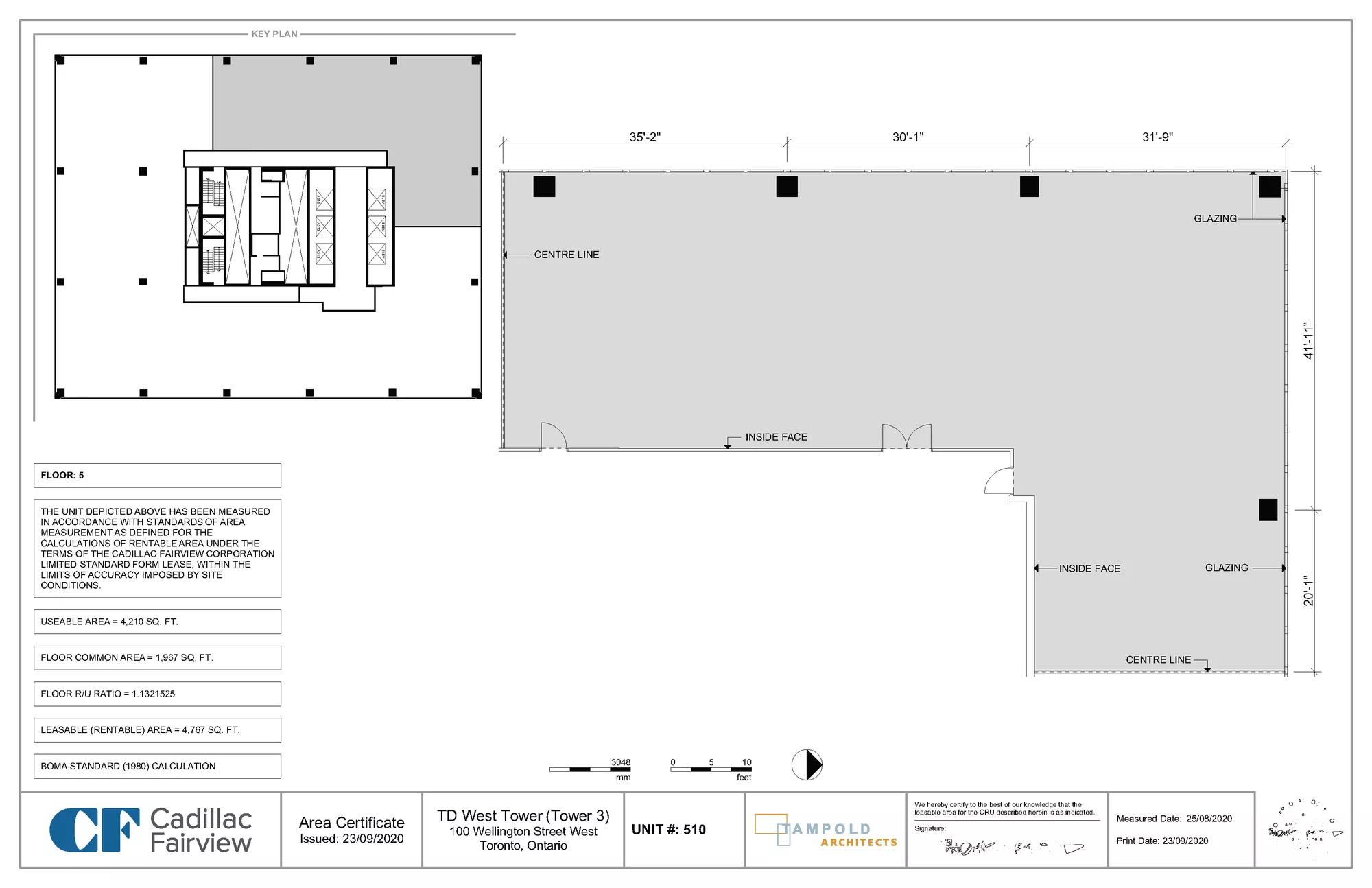 | Cadillac Fairview Tower | 1100 | 4,241 | Immediately | Reception, Boardroom, Offices, Lunchroom & Open Area | |||||